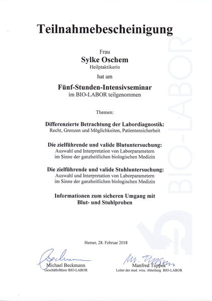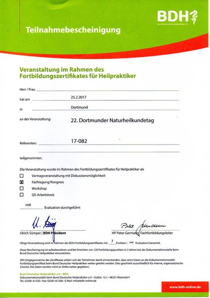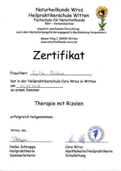 Seitdem besuche ich regelmäßig Fortbildungen in naturheilkundlichen Seminaren.